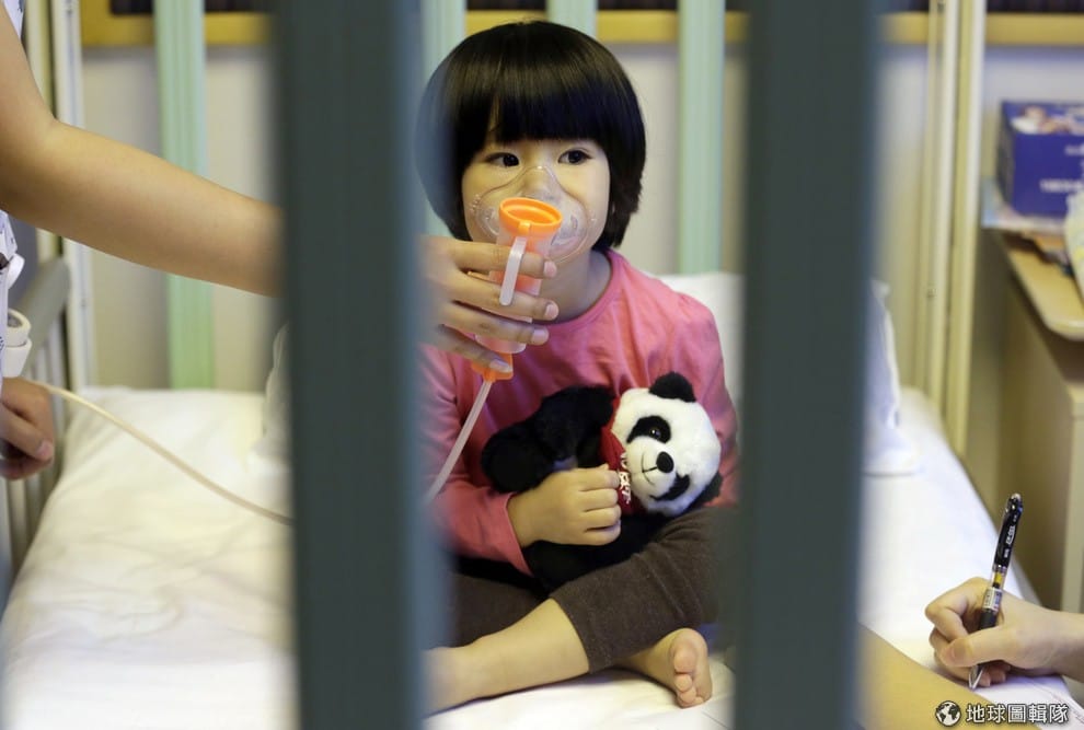 北京當地的國際兒童病院中,可見 2歲的芃芃(音譯,Pengpeng)口鼻罩著噴霧器接受治療。北京在 18號時再度發出紅色層級的空汙預警。這也是當地史上第二次發布這樣層級的警報,第一次是發生在 12月7日的時候。