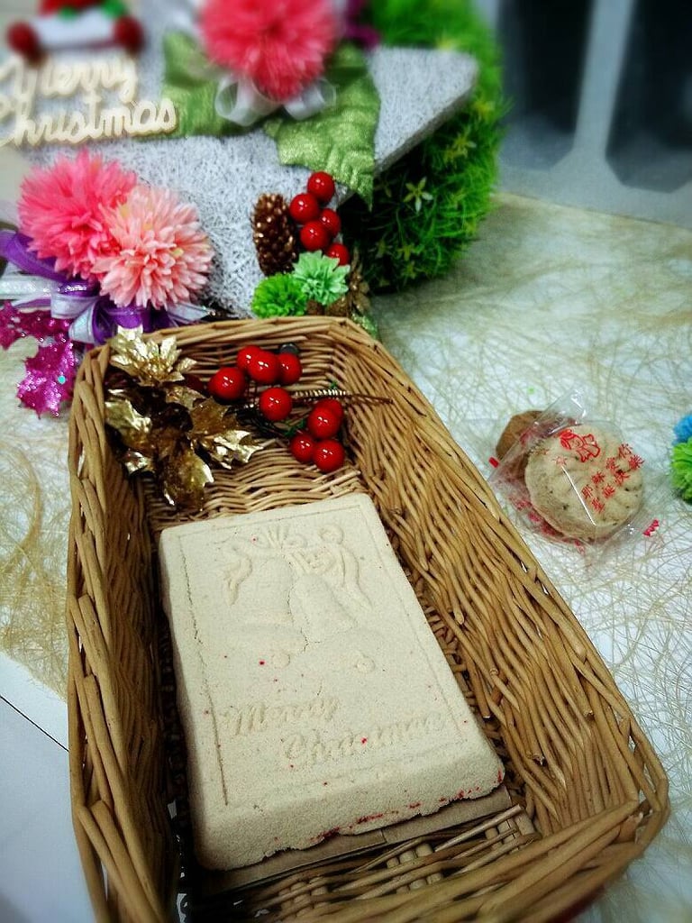 從以前開始,台灣的教會在每年聖誕節會發送聖誕糕給幼稚園;撇去這個有點諧音的名稱,其實這塊聖誕糕就是一塊不折不扣的綠豆糕(沒錯,就是雅量裡面的綠豆糕!),但是上面會有立體的圖案,是非常特別的禮物。