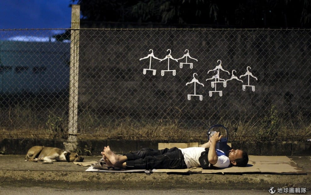 古巴移工躺在地上看手機,他所在之處是哥斯大黎加與巴拿馬交界處,當地媒體表示近期哥國政府決定限制發給移工的簽證數量,所以在邊境可見許多等待拿簽證的民眾。
