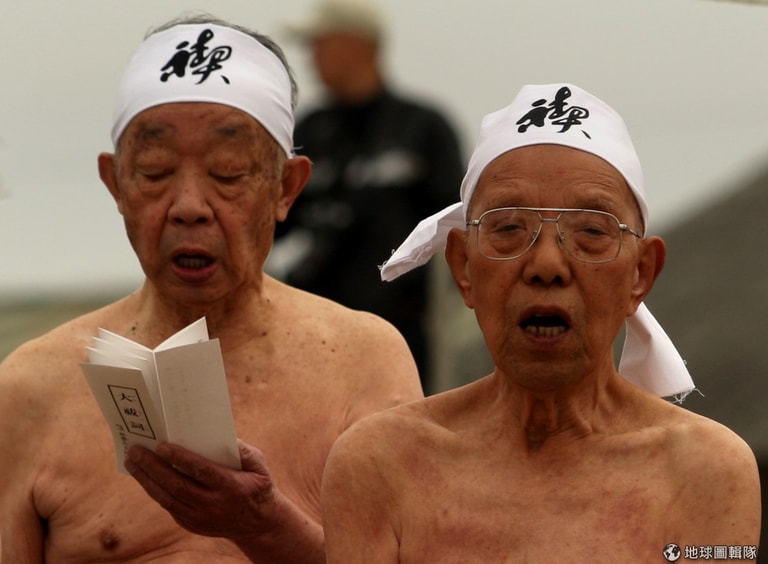 進入正式的祈福儀式前,神社的神職人員們會先在海水中淨身。Buddhika Weerasinghe/Getty Images