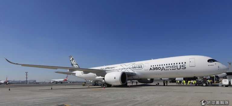 這架飛機是A350 XWB,機上設有會自動調節的LED 燈,能夠根據乘客生理時鐘、太陽的光與熱來調節燈光。