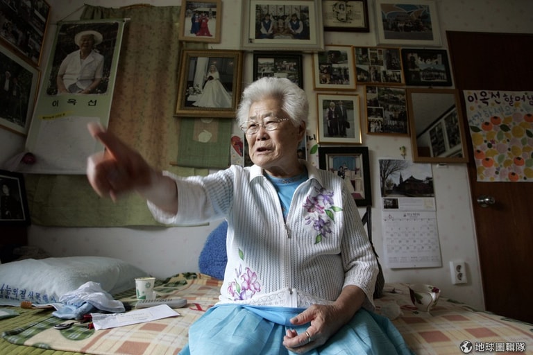 一名南韓前慰安婦住在專門提供慰安婦居住的社區中,跟記者控訴當年日軍的暴行。