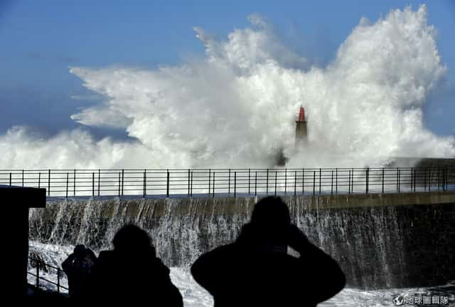 站在西班牙維亞維勒(Viavelez)海邊的人們,舉起相機拍下白色巨浪。