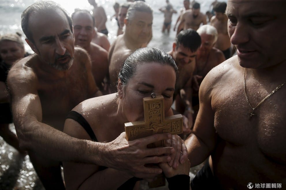 穿著泳衣的人們爭著跳進水裡,搶奪湖水裡的木製十字架。在保加利亞當地,每到主顯節(Epiphany Day)時,境內東正教的牧師們會把十字架丟進水中,象徵庇佑,人們則相信如果能拿到這些落進水中的十字架就可以得到健康與財富的保佑。