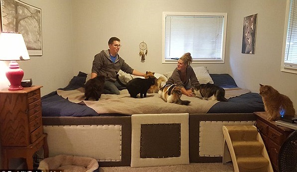 為了和10多隻貓狗共眠,這對美國情侶可是特別訂製了Super Size的大床。 取自網路