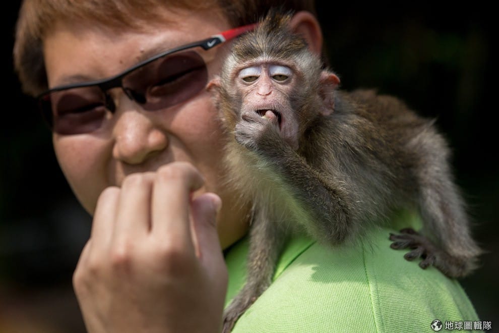 調皮地學起人類模樣的長尾小猴。Chris McGrath/Getty Images