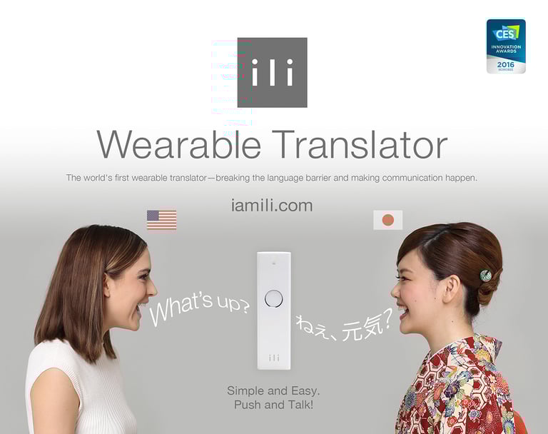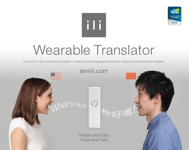 由Logbar公司研發的即時翻譯機ili,日前在國際消費電子展(Consumer Electronics Show, CES)上登場,翻譯的速度和簡便性讓人眼睛一亮,而該公司後續推出的廣告影片也同樣地引發關注。
