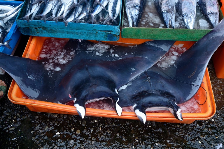 屏東當地的漁市在近日出現保育類動物蝠魟在網路上引發保育爭議。