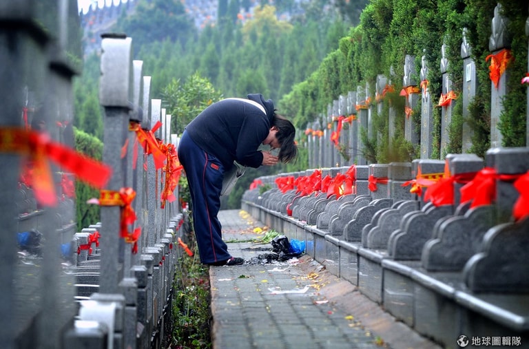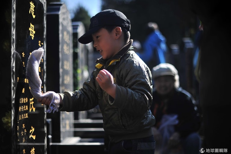 北京的墓園內,有小朋友也在幫忙灑掃。ChinaFotoPress/Getty Images