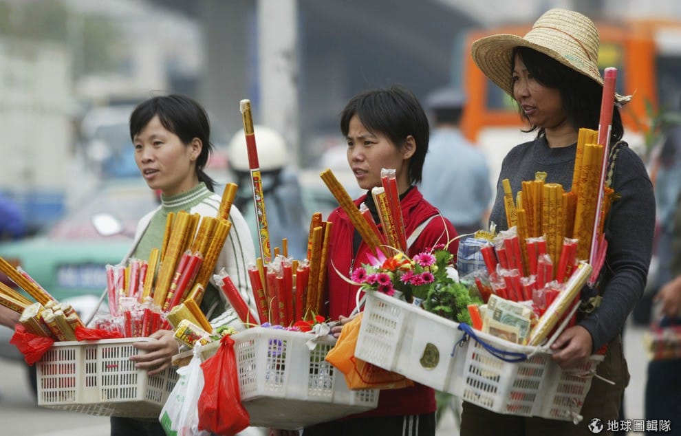 廣州地區的小販,忙著兜售祭祀用品。China Photos/Getty Images