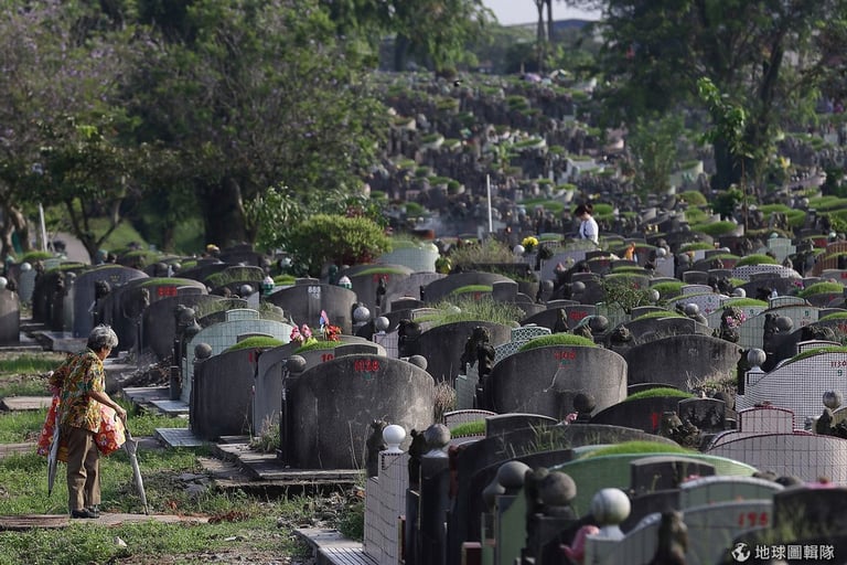 照片中是新加坡當地的一處墓園,管理員坐在小小的「休息屋」中。Suhaimi Abdullah/Getty Images