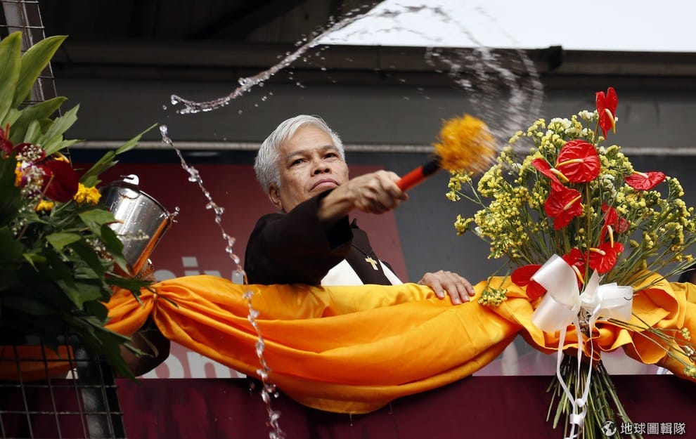 馬尼拉當地的天主教堂在遊行活動開始前,先將複製版的黑耶穌像放到教堂外。