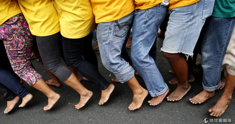 信眾們光腳在高溫下長時間行走,期間可能發生脫水昏倒的風險。