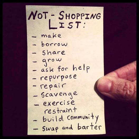 2013年7月,美國華盛頓州班布里吉島(Bainbridge Island)居民發起了「什麼都不買計畫」(Buy Nothing Project),希望透過社區民眾之間的互相幫助,可以讓「什麼都不買」的活動成為長久的、持續性的、全年式的生活型態。
