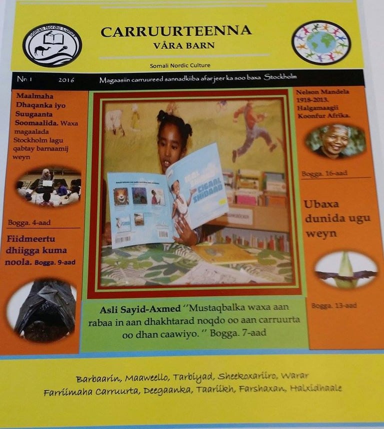 這本雜誌叫做《我們的孩子》(暫譯,Carruurteenna),創刊號在上個禮拜出版。雜誌主要是用索馬利亞語寫成,另外有一小部分是瑞典語、英語。想看這本雜誌的人,可以在瑞典的圖書館、學校、書店找到它。