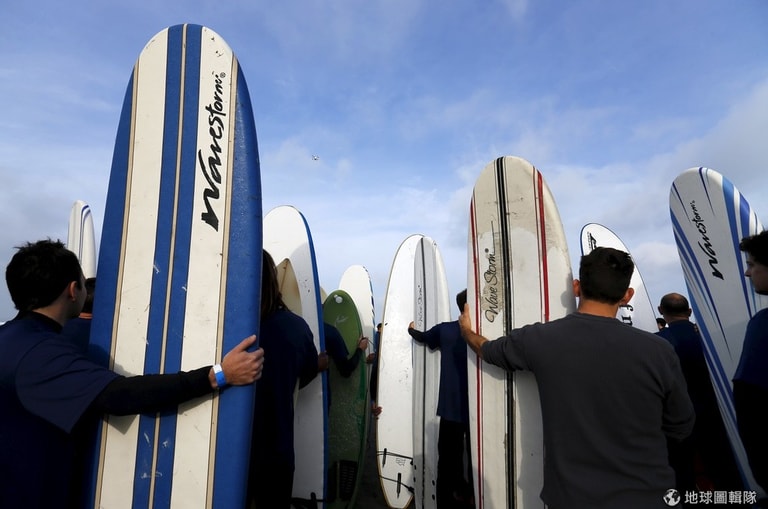 23號這天,衝浪客們來到南加州的拉霍亞海灘(La Jolla)等著打破金氏世界紀錄,挑戰最多人一起衝同一波浪。目前紀錄保持者是南非,六年前共有 110人在南非開普敦衝同一波浪,場面壯觀。