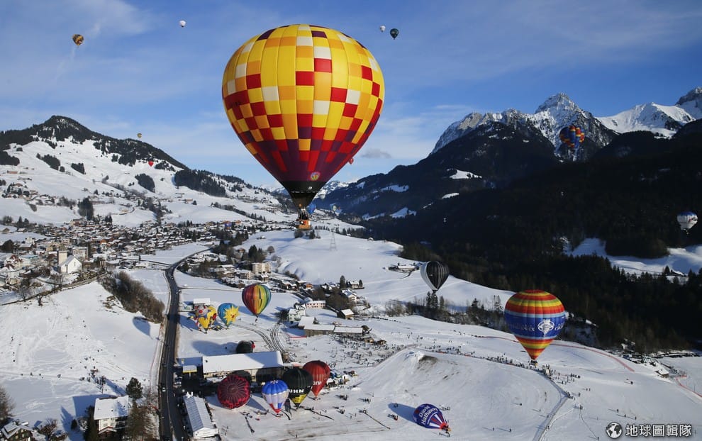 一顆顆熱氣球飛上天際。第 38屆國際熱氣球節正在瑞士小鎮代堡(Chateau-d'Oex)展開,共有 15國好手前來參加,要用絢爛耀眼的熱氣球綴滿整個天空。