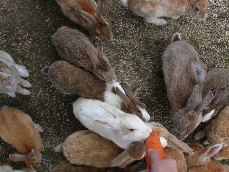 在日本瀨戶內海上的大久野島(Okunoshima),因為有著數量驚人的兔子大軍,又被外界稱為「兔島」。過去報導提到,兔島過去被稱為毒氣島,世界大戰結束後,因為居民從外地引進了 8隻兔子,這些兔子就在舒適、沒有天敵的狀況下,安心哺育出一代代的兔子家族,時至今日,大久野島已經是座擁有 300多隻兔子的稀奇島嶼。