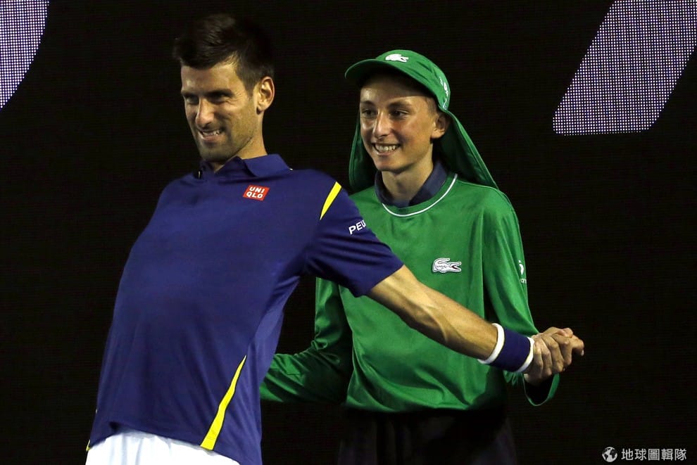 一名球僮正在幫世界球王喬科維奇(Novak Djokovic)拉筋,準備在澳洲網球公開賽大展身手。