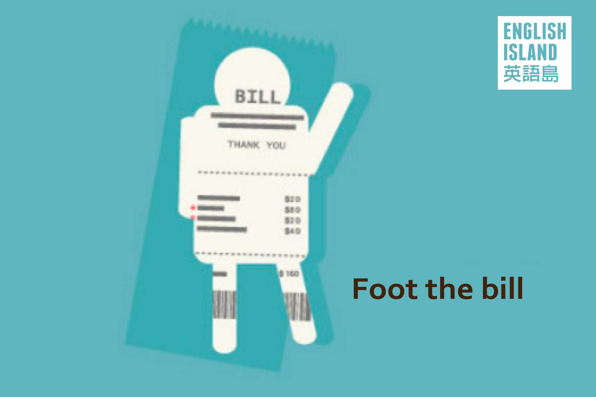 聽到Foot,多數人的第一反應是名詞的「腳」,當動詞的話則解釋為「步行」,不過foot the bill可不是把帳單踩在腳底下,而是付帳的意思。你或許覺得奇怪,付帳為什麼會用foot,其實那是因為以前店家會把帳目的總金額寫在帳單底部(foot of the bill or account),foot相當於bottom(底部),因此後來就延伸出這個慣用語。