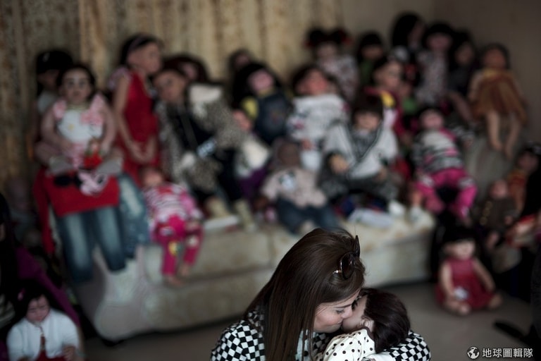 美容沙龍的納茲塔(Natsuda Jantabtim)親親她的娃娃,納茲塔買下娃娃神到現在已經有 8個月,她說:「我的生活有了很大的改變,變得更好了。」