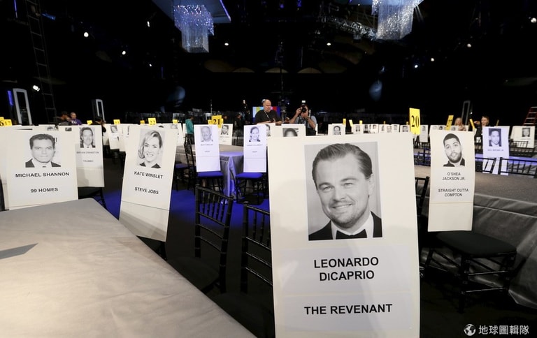 好萊塢影星李奧納多狄卡皮歐(Leonardo DiCaprio)的肖像被貼在椅子上。隨著第 22屆美國演員工會頒獎典禮即將開始,工作人員趕忙布置會場迎接參與盛會的明星,其中最受人矚目的就是今年以《神鬼獵人》(The Revenant)一片入圍的李奧納多狄卡皮歐,他除了是一名出色的演員也是聯合國的和平特使,長期倡導環境保護,呼籲世人關住氣候變遷帶來的影響。