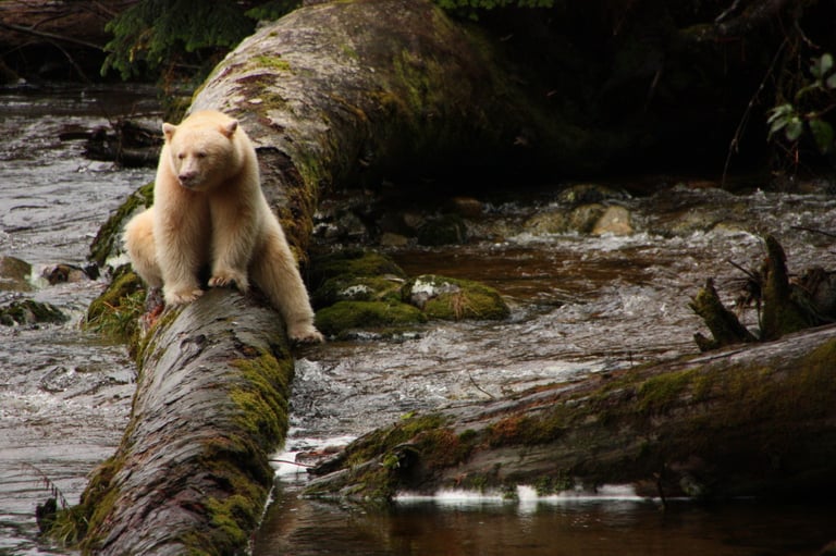大熊雨林從加拿大西北的瓜達拉島(Quadra Island)一路延伸到阿拉斯加,面積足足有 640萬公頃(約 1.7個台灣大)。雨林生物多樣性豐富,長有千年歷史的美西紅側柏(western red cedar)、高約 30層樓的錫特卡雲杉(Sitka spruce),住著水貂、白色柯莫德熊以及通稱為「第一民族」(註1)的加拿大 26個原住民民族。