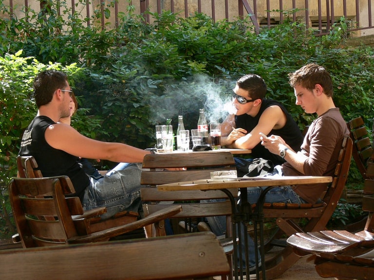 法國當地的年輕人在抽菸。