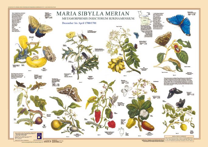 1647年,梅里安在德國法蘭克福出生,她來自藝術世家,從小就對描繪花卉、蝴蝶等感興趣。她喜歡用畫筆記錄蝴蝶的一生,家中到處都是瓶瓶罐罐還有植物,而廚房就是她的實驗室。