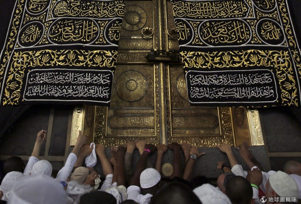 聖城麥加當地,穆斯林們虔心觸摸「黑石」(al-Hajr al-Aswad,英語:Black Stone)旁的大門,同時排隊想親吻這塊曾被先知穆罕默德崇敬的石頭。