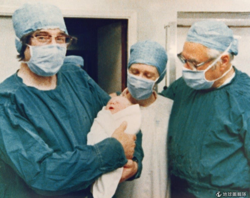 1978年,愛德華(左)向全世界介紹他們團隊的孩子:路易斯‧布朗(Louise Brown)。Keystone/Getty Images