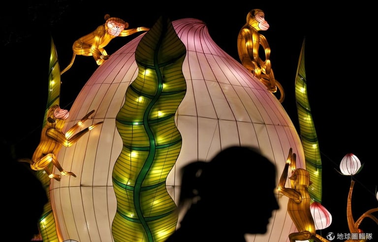 金猴攀桃 倫敦應景推出花燈展精緻程度讓人讚嘆