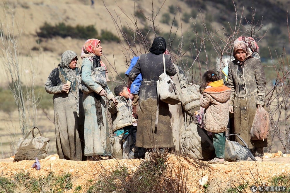 敘利亞與土耳其邊境,渾身泥沙的難民們正等待土耳其邊境放他們進入土國當地。