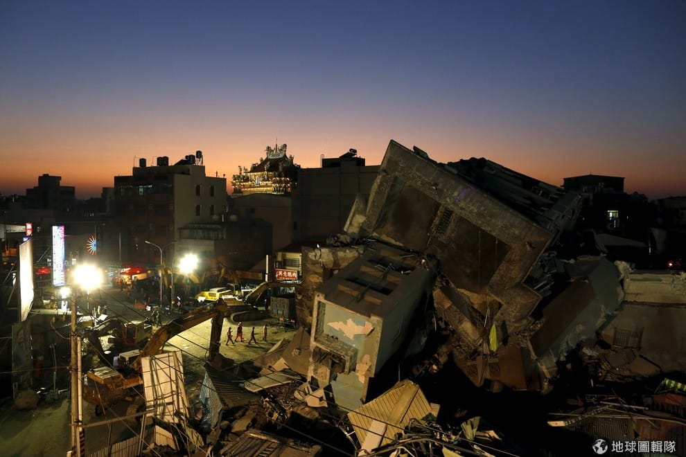 大年初一的傍晚,入夜後的台南市區可見救難人員仍努力在地震現場搶救。報導指出,6號時高雄市美濃區發生規模 6.4地震,造成台南市多處災害,台灣地震科學中心主任馬國鳳指出,這地震是「雙主震地震」。第一主震規模約 6.2,第二事件為主震發生 4秒後規模約 6.1。