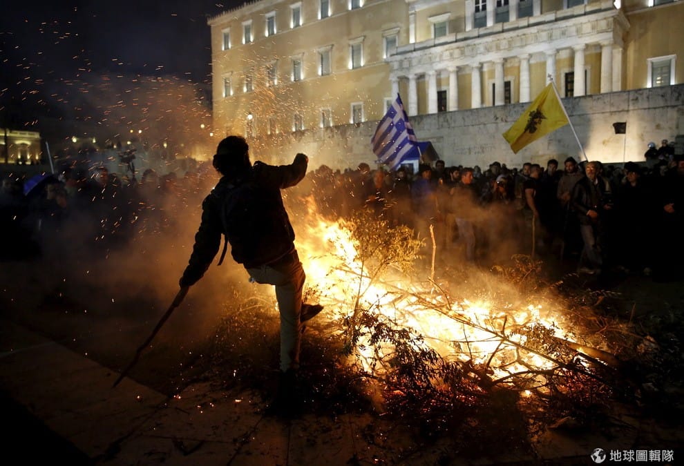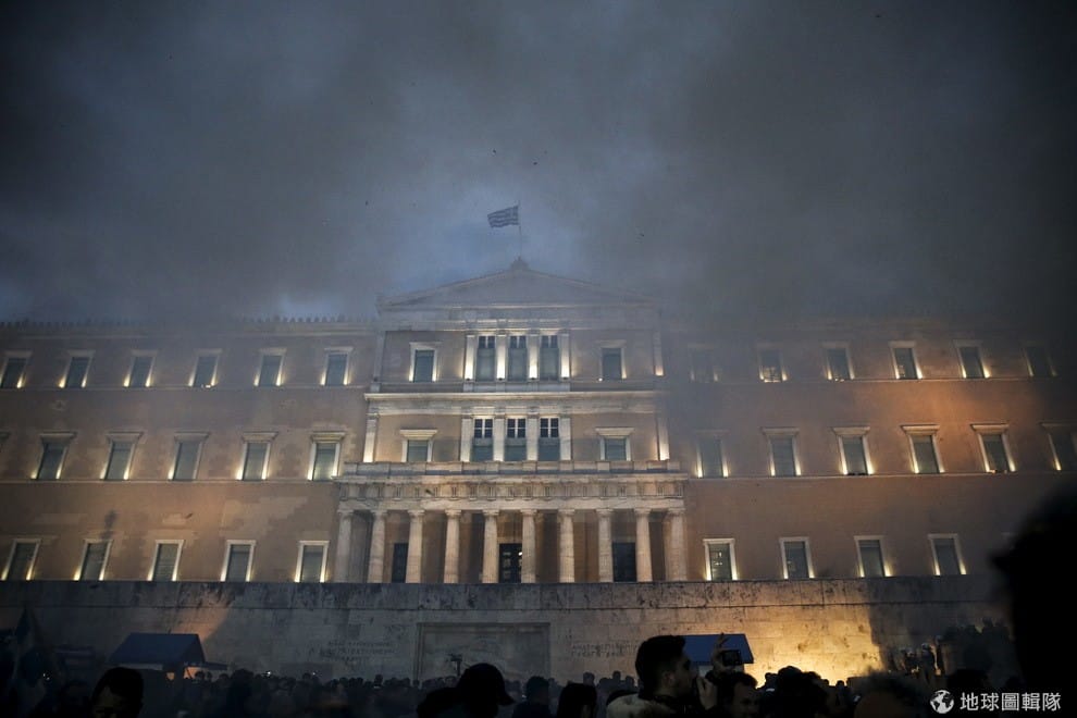 雅典市區被灰煙籠罩,當地民眾不滿政府砍掉退休金等撙節政策發起了大規模抗議。
