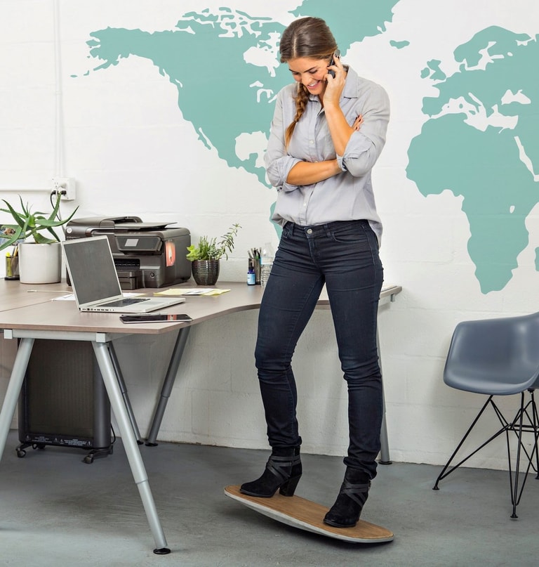 希斯團隊打造了讓人在站著的時候,能動動腳踝移動身體的平板,藉由這樣的動作讓下半身不會因為久站不動而受傷,同時還能讓身體晃動、提高心跳率,根據他們的募資網頁,這項發明依照材質和承重不同,售價約在 269到389美元之間(折台幣約 9,000元到13,000元)。