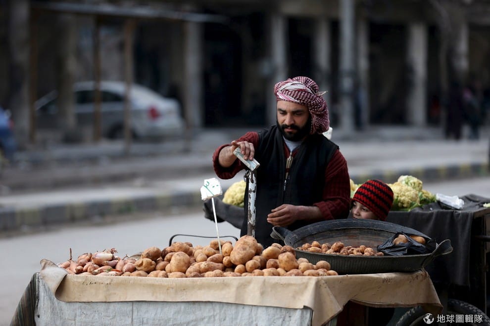 敘利亞反政府軍控制的杜馬(Douma)市裡,一名男人正站在街上賣馬鈴薯。敘利亞已經內戰 4年多,戰爭打個不停,但老百姓的生活還是得過,認識中東超過 30年的黛安娜(Diana Dark)就走訪了敘利亞,分享了外界不曾看過的敘利亞日常生活。