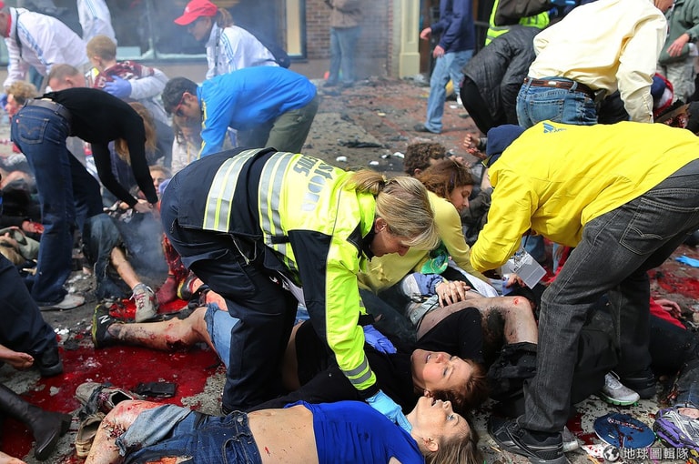 BBC、CNN、《路透社》等國際各大媒體,均以頭條報導震驚國際的炸彈攻擊事件,美國時間下午約2點50分,波士頓的國際馬拉松賽傳出震天巨響,2顆炸彈先後在終點線引爆,造成110名跑者、觀賽民眾受傷,更有2名民眾不幸罹難,CNN報導更提到其中一名罹難者為8歲孩童。