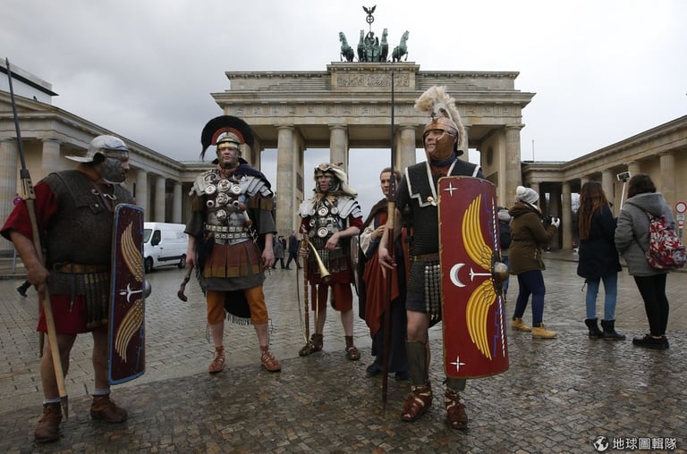 柏林的宣傳會上,人們打扮成古羅馬士兵的模樣準備拍照。德國特里爾(Trier)鎮舉辦羅馬帝國皇帝尼錄(Nero)的展覽,帶民眾回顧這位古羅馬皇帝的一生。2013年的時候,德國的博物館也曾經為了介紹一場羅馬戰爭,請來數百位演員穿上盔甲,打扮成古羅馬人的樣子,拿著長槍和盾牌,用演的把歷史說給小朋友聽。