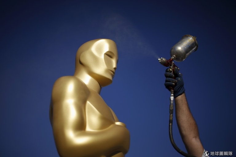 工人為奧斯卡小金人雕像噴上噴漆,準備迎接今年的奧斯卡獎頒獎典禮。每年進入奧斯卡頒獎季,各界總是期待誰會把小金人帶回家,但影星要風光得獎,除了精進自己的演技,還得額外付出驚人的時間和金錢為自己拉票。