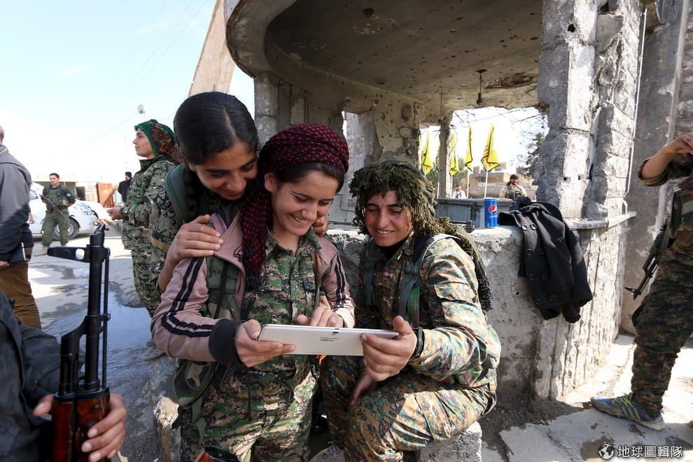 一群立志將伊斯蘭國(IS)趕出敘利亞的女戰士,開心地看著平板電腦上的資訊。目前,敘利亞情勢一片混亂,除了盤據敘利亞北部的伊斯蘭國,政府軍和反政府軍和談也敲不定,不過,轟炸當地多時的俄國在與美國長談兩天後,答應「原則上暫時停火」。