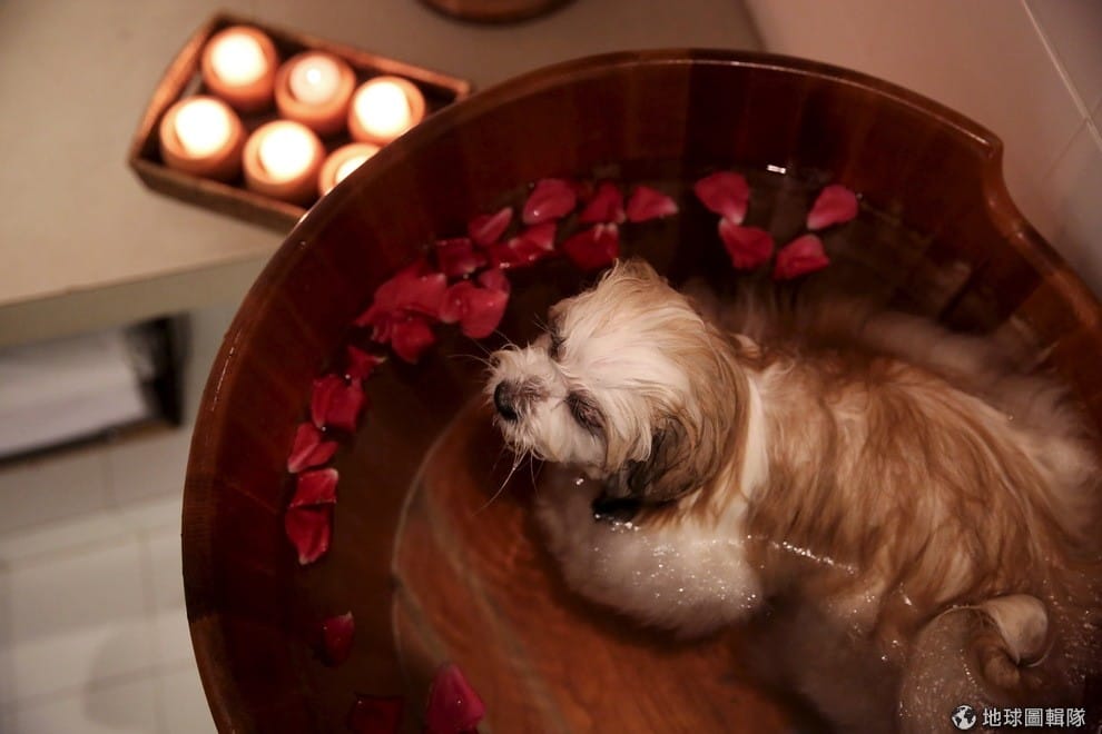 一隻拉薩犬享受地泡著花瓣浴,一旁還點著蠟燭製造放鬆的氣氛,隨著越來越多人養毛小孩來陪伴自己,寵物市場也越來越夯,以巴西來說,聖保羅現在就出現了高級的寵物沙龍,每一隻進到沙龍的狗狗,都能享受頂級舒適的療程。