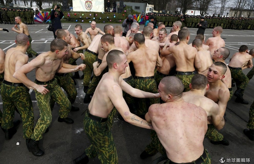 裸上身的特種部隊成員參加「送冬節」(Maslenitsa)慶祝儀式,除了展現不畏風寒的勇武外,送冬節這天也會吃名為「布利尼」(blini)烤薄餅來增添喜氣,這種薄餅呈金黃色,象徵著太陽,表示春天的來臨和白天越來越長。