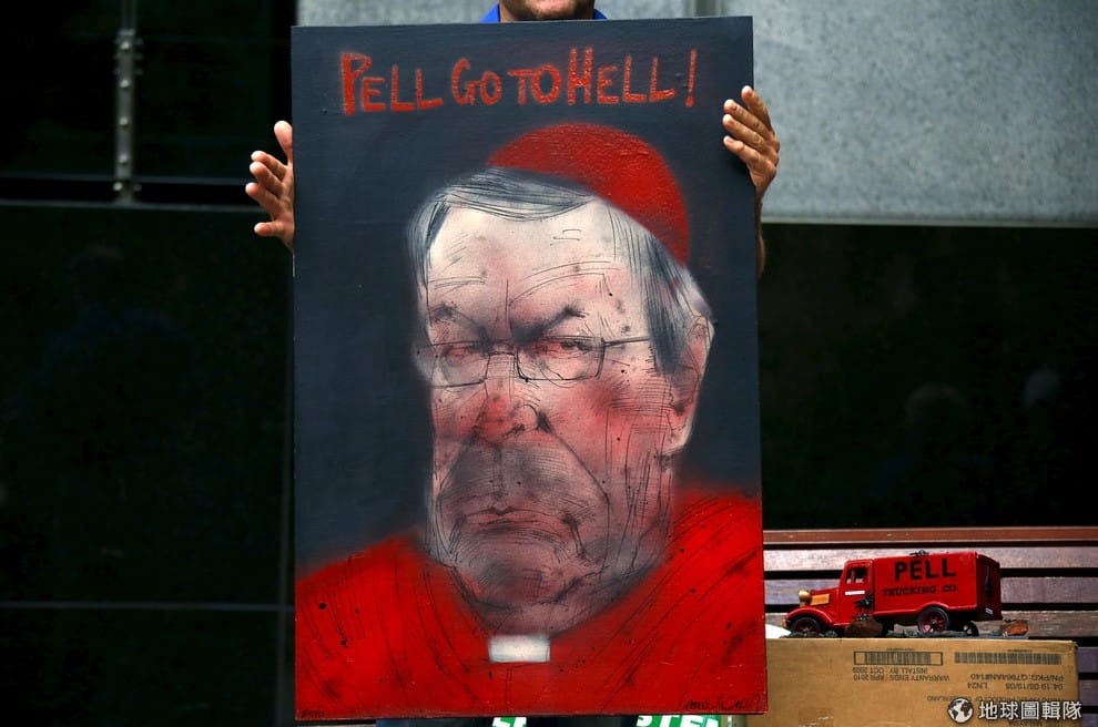 28號這天,遭到天主教神父性虐待的受害者親友,高舉印有澳洲樞機主教佩爾(George Pell)肖像的海報,要佩爾「下地獄」。今年 74歲的佩爾是目前天主教廷中,出面替神父性虐待小孩一事作證中職位最高的神父,他手捧聖經發誓會好好做證,他說天主教廷犯下了「巨大的錯誤」,他也承認澳洲教會讓信徒失望了。