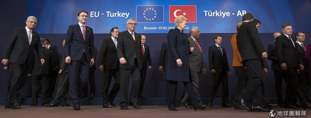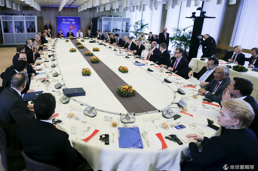 為了解決第二次世界大戰以來最嚴重的難民危機,歐盟與土耳其在 7號時展開協商,希望土耳其能安置敘利亞湧入當地的難民,並加強海上巡邏打擊人口販運,土耳其則表示,要做到這些事情的前提是歐盟必須再給他們 30億歐元(折台幣約 1,098億元),並答應重審土國加入歐盟程序。