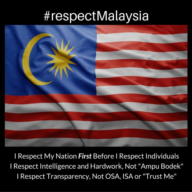 反對首相納吉的網友發起「#尊重馬來西亞」的運動,其上寫道:「我尊重個人前先尊重我的國家。我尊重聰明才智和努力,而不是拍馬屁。我尊重透明而不是官方機密、內部機密法或是『相信我』三字。」首相納吉否認所有貪汙指控,他要全國人民相信他的清白。