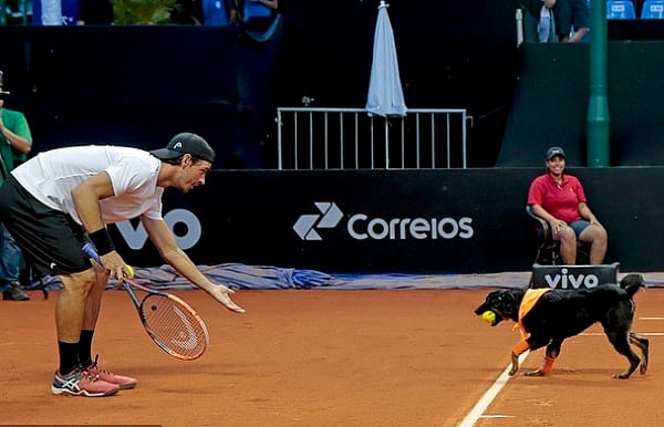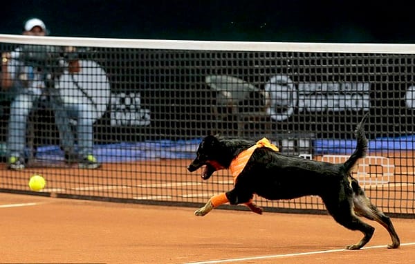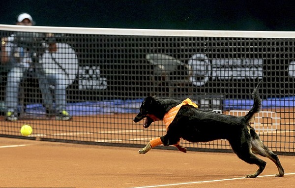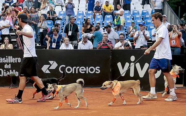 日前在巴西聖保羅舉行的網球公開賽,一場由西班牙球員對葡萄牙選手的賽場上,出現了令人驚訝的景象,4隻收容所裡的浪犬弗瑞達(Frida)、卡斯托(Costela)、梅爾(Mel)和伊莎貝爾(Isabelle),竟然擔任球僮,為選手揀球。