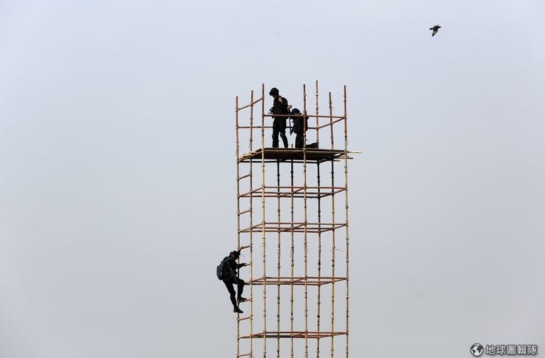 世界文化節活動會場立起鷹架,準備搭建舞台。