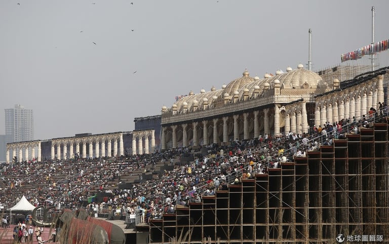 為了避免發生事故,印度軍隊在會場蓋了多座臨時用的浮橋。