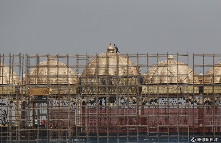 印度警察將會在這次的活動中負責管理人潮。上圖是警察在活動中守夜用的高台。